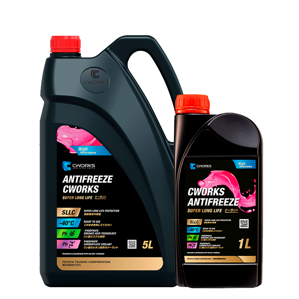 CWORKS ANTIFREEZE SUPER LONG LIFE – раствор фосфатно-карбоксилатного (P-OAT) антифриза на основе этиленгликоля, органических ингибиторов и пакета присадок, не содержащих силикатов, нитратов, аминов и боратов. Продукт предназначен для круглогодичной защиты от перегрева, замерзания и коррозии двигателей легковых и грузовых автомобилей. Предназначен к использованию в готовом виде.