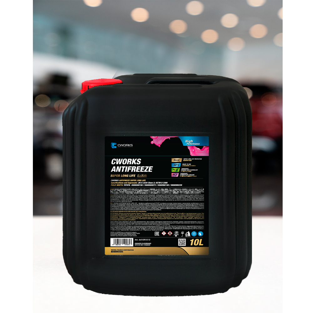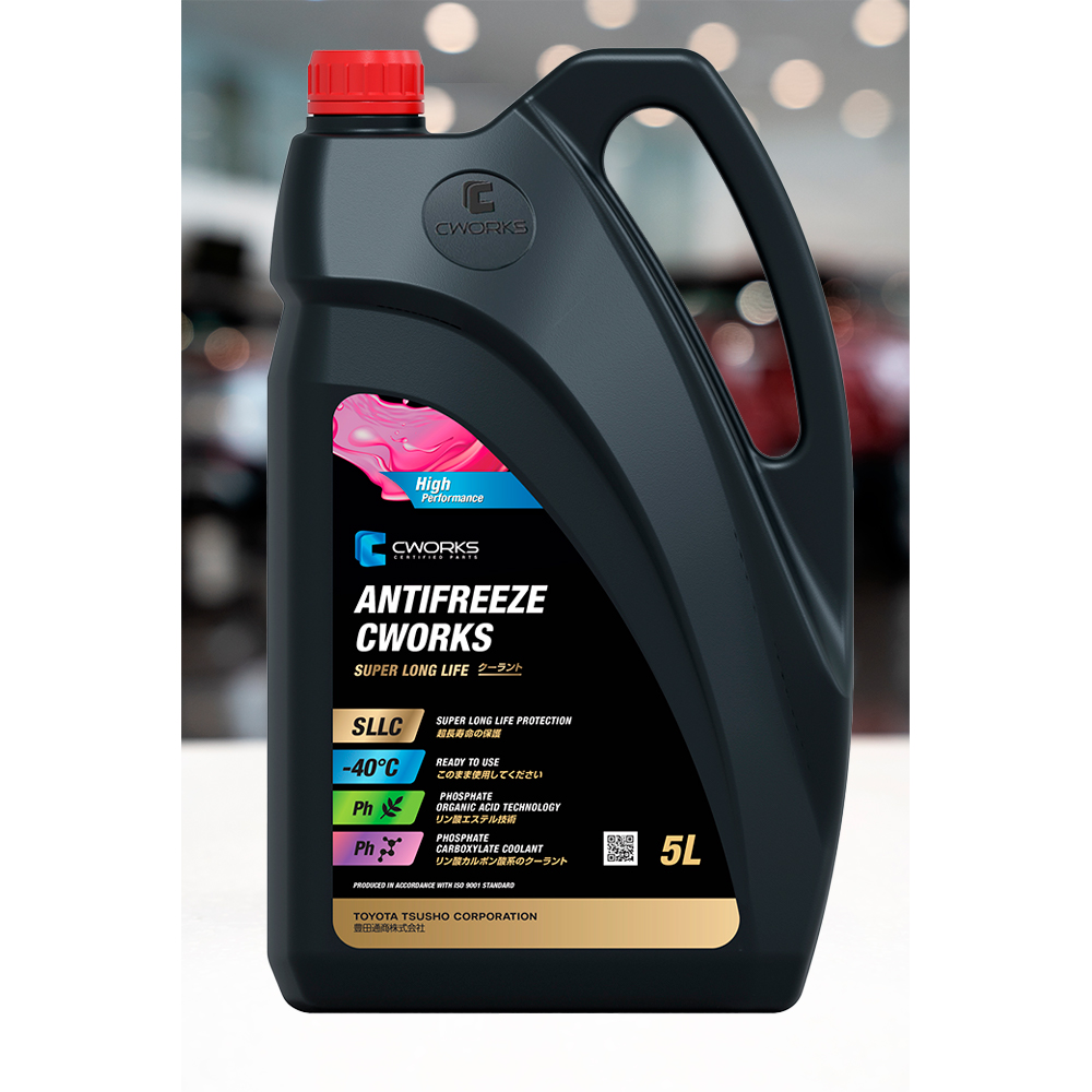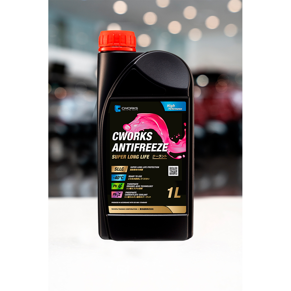 CWORKS ANTIFREEZE SUPER LONG LIFE – раствор фосфатно-карбоксилатного (P-OAT) антифриза на основе этиленгликоля, органических ингибиторов и пакета присадок, не содержащих силикатов, нитратов, аминов и боратов. Продукт предназначен для круглогодичной защиты от перегрева, замерзания и коррозии двигателей легковых и грузовых автомобилей. Предназначен к использованию в готовом виде.